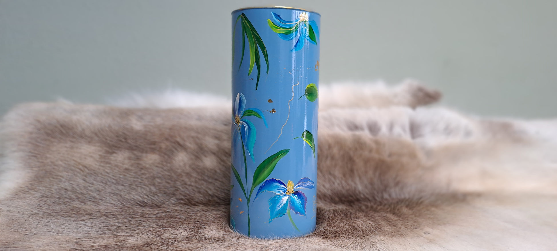 Ontdek onze prachtige handbeschilderde blauwe vaas, versierd met delicate bloemen. Deze unieke creatie voegt een vleugje kleur en elegantie toe aan elke ruimte, perfect voor het tentoonstellen van je favoriete bloemen of als een decoratief statement op zichzelf. De combinatie van het frisse blauw en de levendige bloemen maakt deze vaas een echte blikvanger. Ideaal voor zowel moderne als klassieke interieurs, deze vaas is niet alleen functioneel, maar ook een kunstwerk dat je met trots kunt tonen.