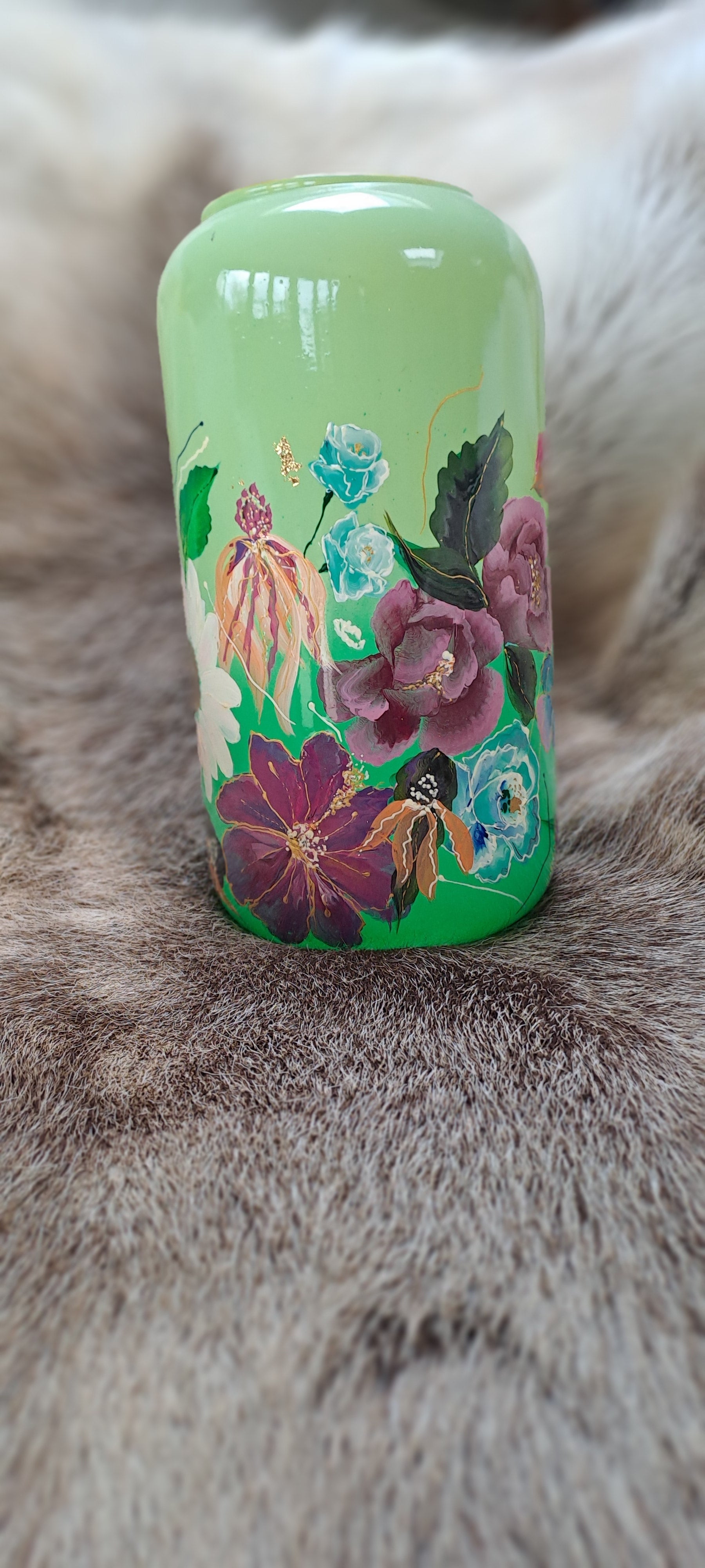 Breng de zomer in je huis met deze vaas, beschilderd met kleurige bloemen! Hier wordt je vrolijk van!