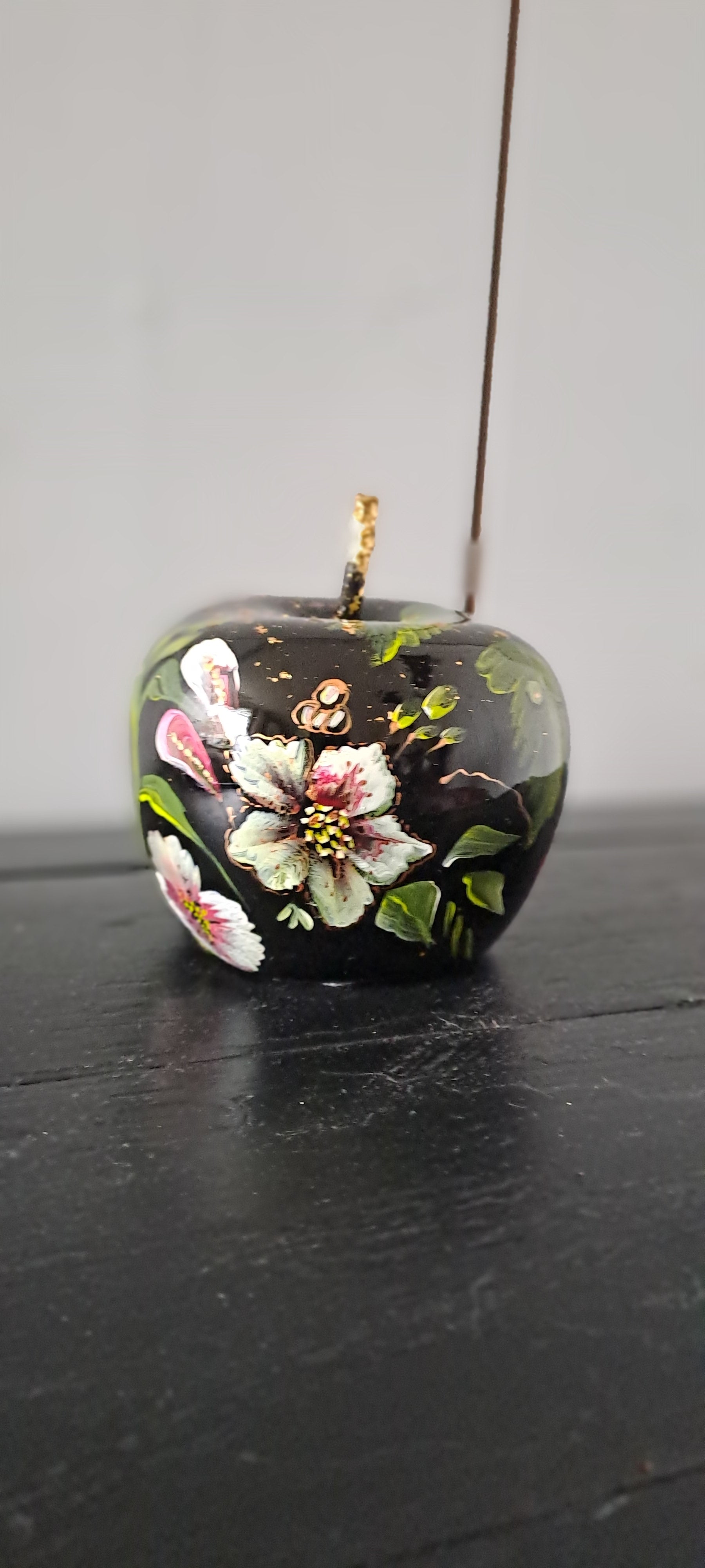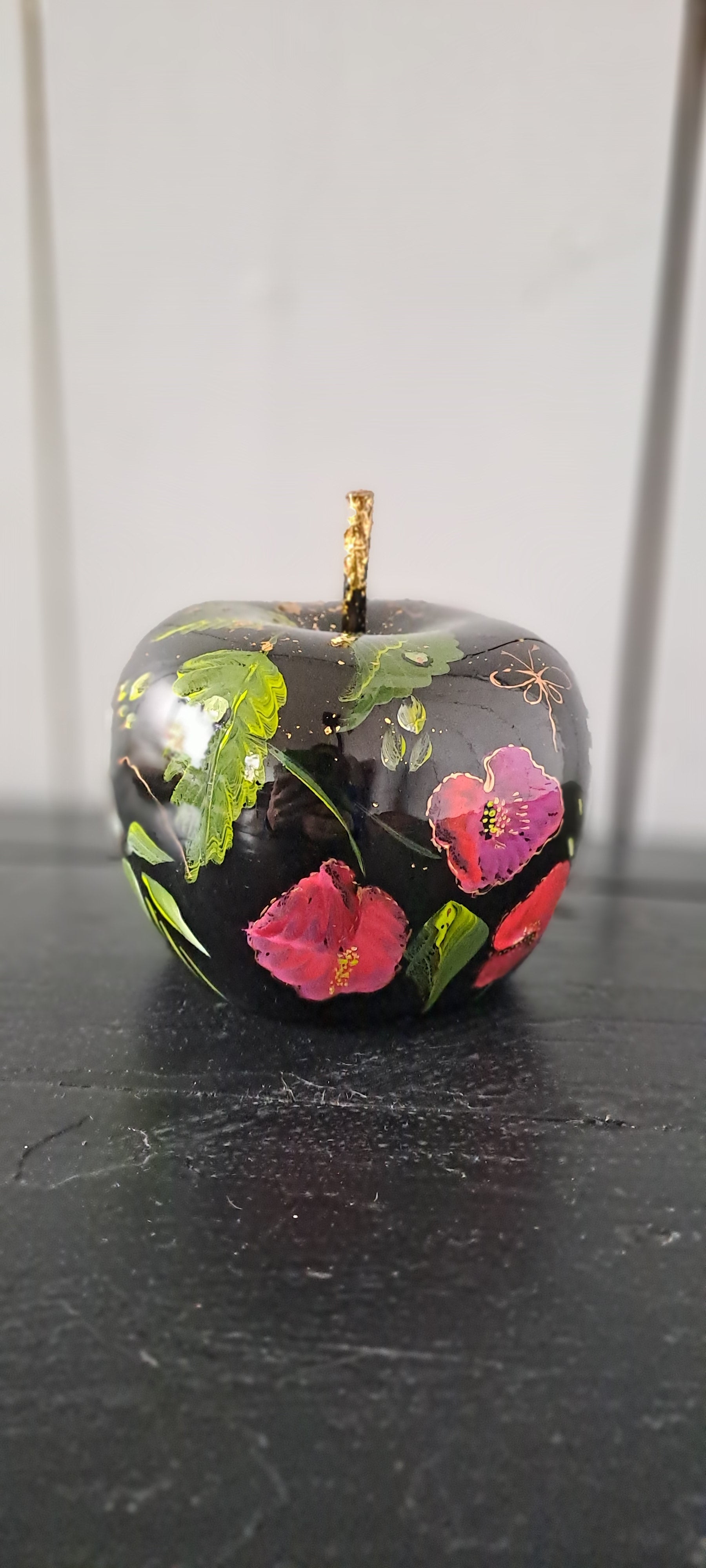 Decoratie appel keramiek zwart met bloemen " Night flower"