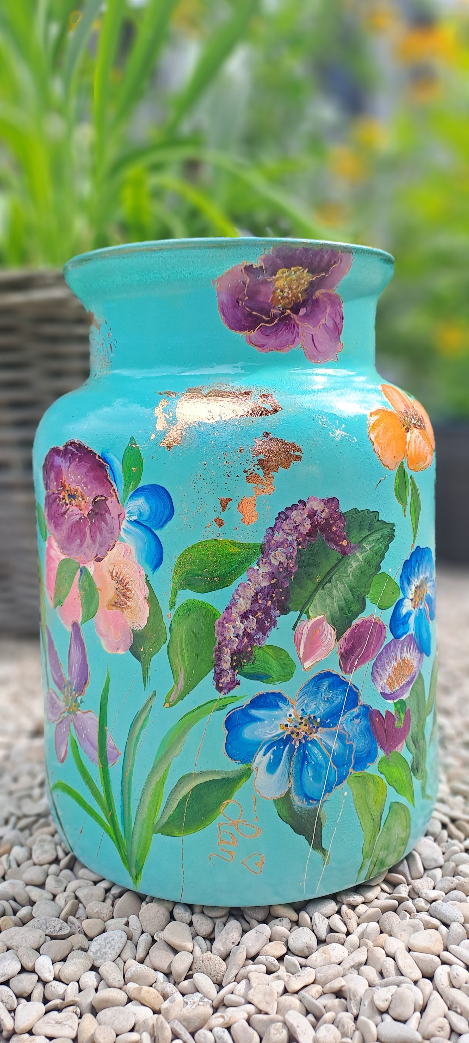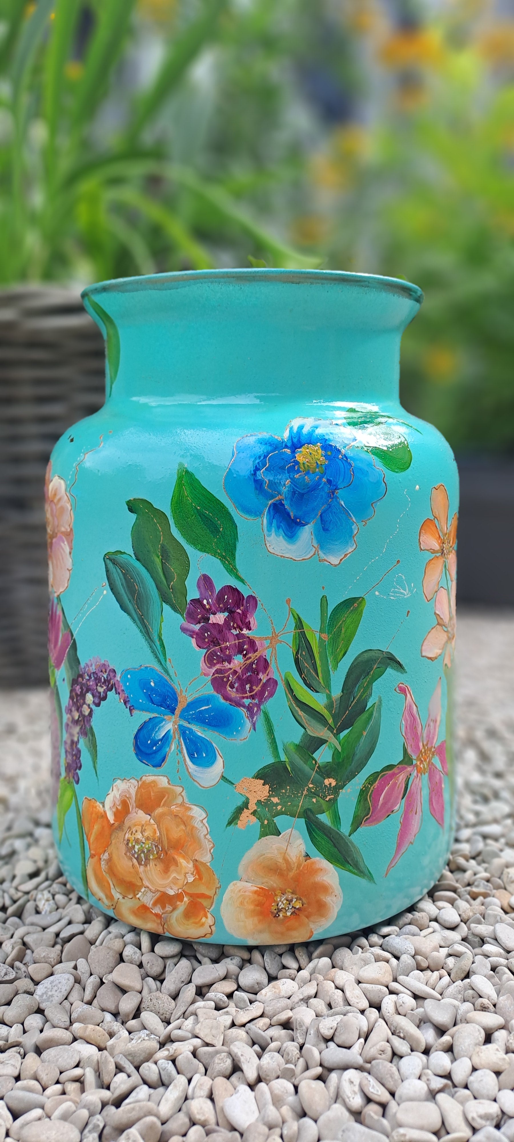 In heldere kleuren beschilderde vaas. Met of zonder een boeket staat deze vaas overal mooi. Leuk om als cadeau te geven of lekker zelf te houden!
