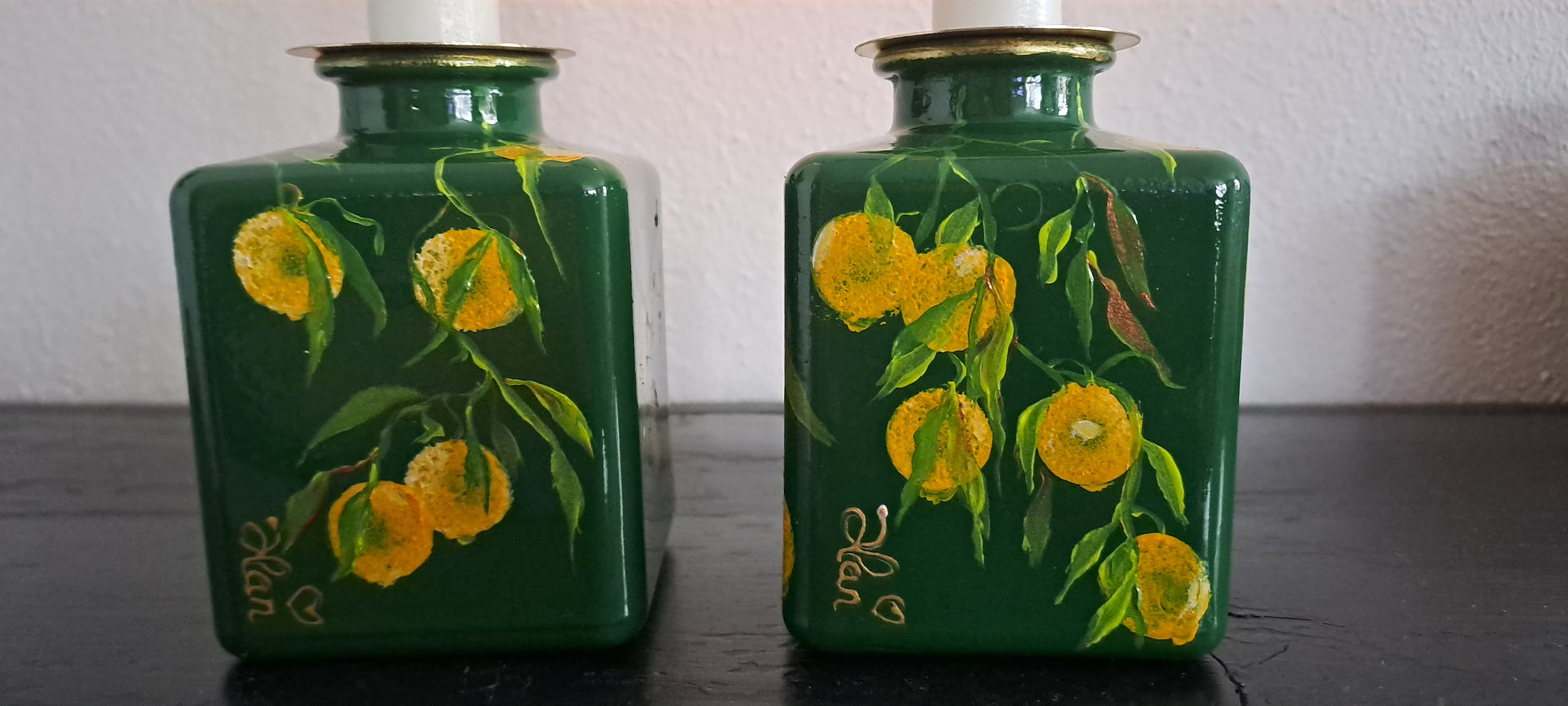 Decoratieve citroentjes op een mooie donkergroene ondergrond.