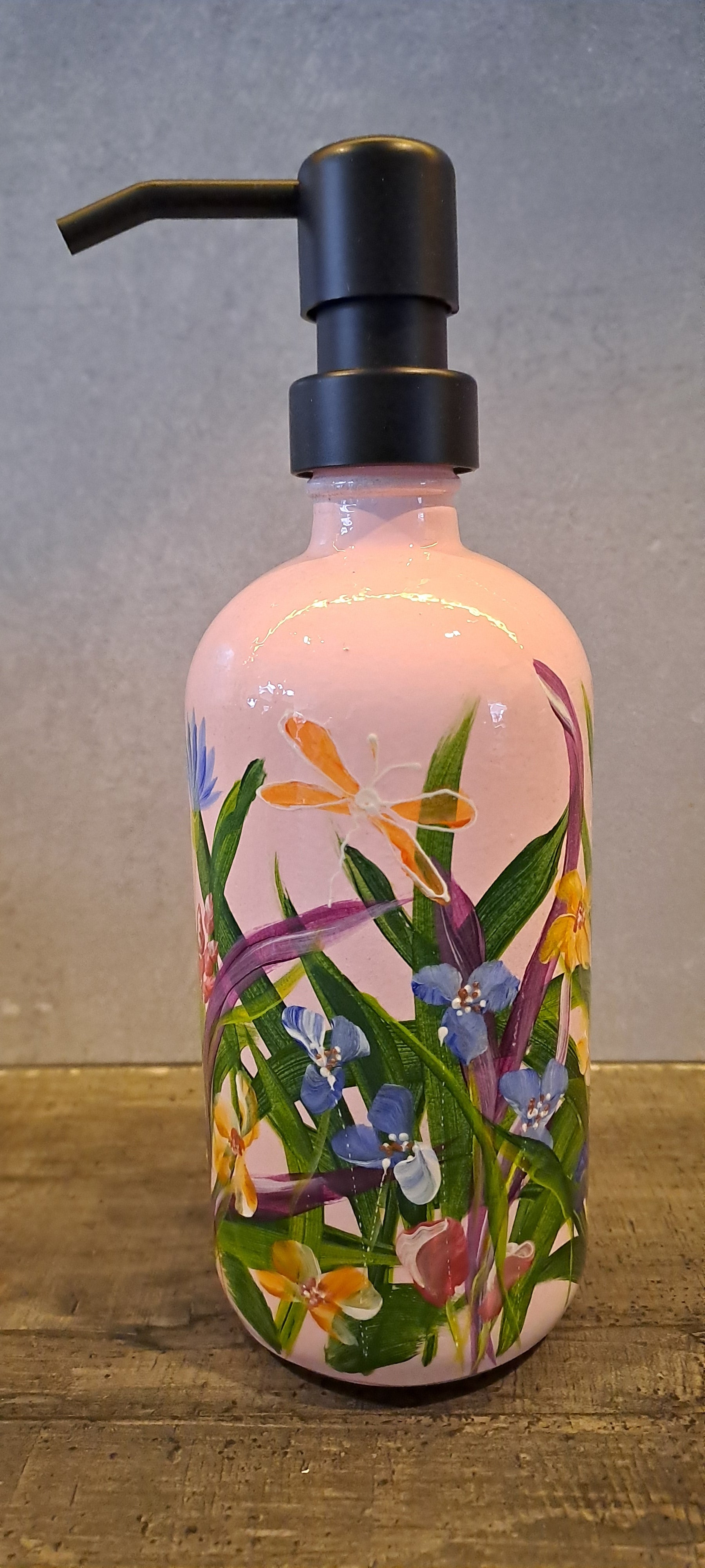 Beschilderd met kleurige zomerbloemen zodat je gelijk een blij gevoel krijgt als je je handen gaat wassen!